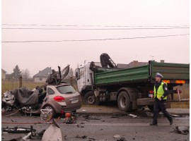 Do śmiertelnego wypadku doszło dzisiaj około godziny 10:30 na ulicy 1-go Maja w Sieradzu. Z niewyjaśnionych przyczyn kierujący osobowym renault zjechał na przeciwległy pas jezdni i zderzył się czołowo z ciężarówką. Kierowca renault clio poniósł śmierć na miejscu.