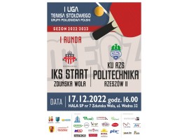 W sobotę START Zduńska Wola zagra we własnej hali z rezerwami Politechniki Rzeszów. Będzie to ostatni mecz przed rundą rewanżową I ligi tenisa stołowego.