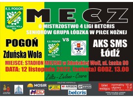 Piłkarze Pogoni Zduńska Wola po raz ostatni w tym roku zagrali przed własną publicznością. W 18. kolejce IV ligi przegrali z AKS-em SMS Łódź aż 0:6. Od 36 minuty rywale grali w dziesiątkę, ale i tak byli w stanie zainkasować Pogoni jeszcze cztery bramki. Jak do tej pory to najwyższa porażka zduńskowolan w tym sezonie.