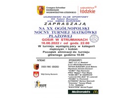 Dziś na boiskach Gminnego Ośrodka Sportu i Rekreacji w Strumianach koło Burzenina rozegrany zostanie 20. Ogólnopolski Turniej Siatkówki Plażowej Nocą. To najstarsza tego typu impreza w kraju.