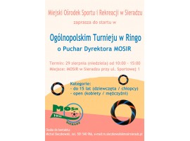 Miejski Ośrodek Sportu i Rekreacji w Sieradzu zaprasza na Ogólnopolski Turniej Ringo „O Puchar Dyrektora MOSiR”. Impreza odbędzie się 29 sierpnia.