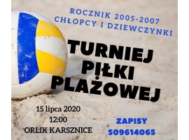 Miejski Ośrodek Sportu i Rekreacji w Zduńskiej Woli zaprasza na Turniej Piłki Plażowej. Impreza odbędzie się 15 lipca na Orliku w Karsznicach. Trwają zapisy.