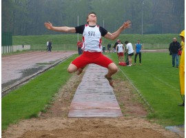 W strugach deszczu rywalizowali uczestnicy lekkoatletycznego Mityngu Otwarcia Sezonu w Sieradzu. W kałużach stojącej na bieżni wody trudno było o wartościowe wyniki.
