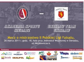 Ostatni w tym sezonie mecz przed własną publicznością rozegrają piłkarze Akademii Sportu z Sieradza. Lider drugiej ligi zagra w sobotę z Unisław Team.