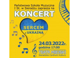 Nauczyciele i uczniowie z Państwowej Szkoły Muzycznej I st. w Sieradzu zapraszają w przyszłym tygodniu na koncert "Sercem z Ukrainą". To wydarzenie zaplanowano na czwartek 24 marca w Teatrze Miejskim, będzie połączone ze zbiórką darów. We wtorek o 16:00 w sali koncertowej szkoły odbędzie się spotkanie dla dzieci ukraińskich, które chciałyby uczyć się gry na instrumentach.