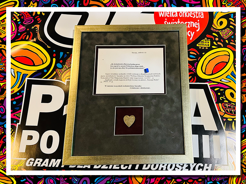 Serduszko zostało wykonane ze srebra zebranego podczas VI Finału WOŚP w 1998 roku. Podczas VII Finału pan Jan wylicytował je dla swojej córki 2 razy, po 1500 zł. W 2000 roku podczas VIII Finału za 700 zł wylicytował je pan Jerzy. Łącznie licytacje sieradzkiego serduszka zasiliły puszki WOŚP kwotą 30 400 zł Przekazuje:Marcin Mielczarek |