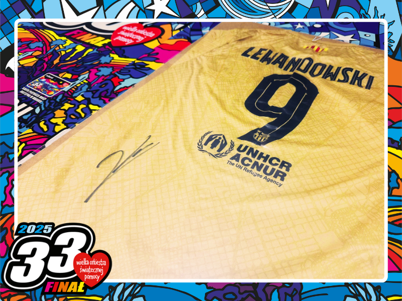 Wyjątkowa okazja dla fanów piłki nożnej i kolekcjonerów! Na aukcji znajduje się złota koszulka FC Barcelony z sezonu 2022/2023, podpisana przez jednego z najlepszych piłkarzy na świecie – Roberta Lewandowskiego.