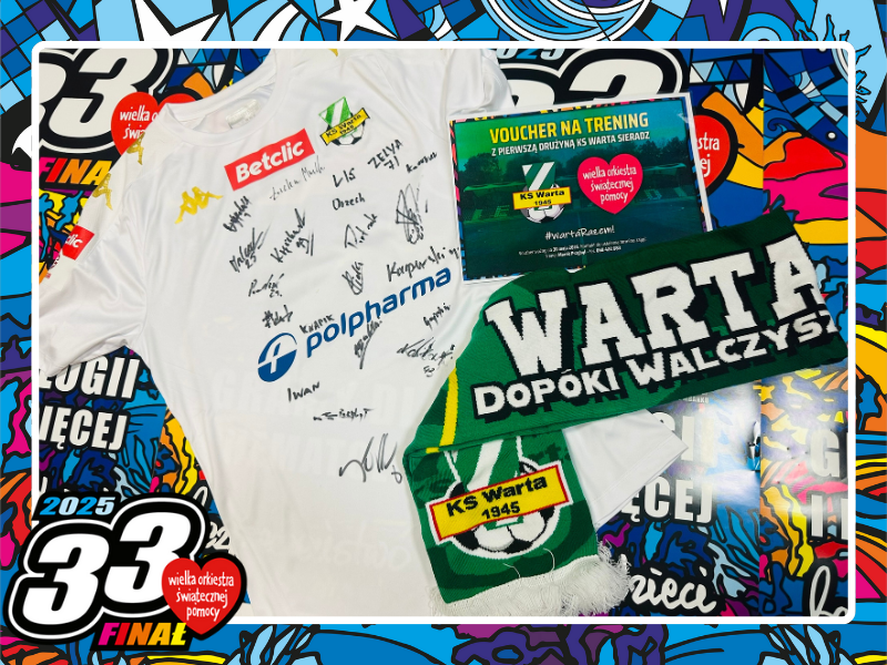 Wyjątkowy zestaw przygotowany z myślą o prawdziwych fanach Warty Sieradz. W zestawie znajduje się koszulka z autografami zawodników 3. ligowego zespołu, szalik klubowy, voucher na trening z pierwszym zespołem Warty Sieradz oraz tegoroczny kalendarz klubu.