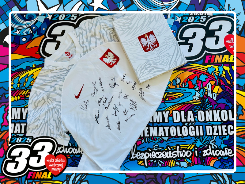 Wyjątkowa koszulka reprezentacji Polski kobiet, podpisana przez najlepsze zawodniczki reprezentujące biało-czerwone barwy na arenie międzynarodowej. Na koszulce znajdują się autografy m.in. Ewy Pajor, Natalia Padilla-Bidas, Zofii Buszewskiej, Martyny Wiankowskiej, Katarzyny Konat, Nikoli Karczewskiej, Amelii Bińkowskiej, Małgorzaty Grec, Klaudii Lefeld, Anny Zapały, Karoliny Klabis, Natalia Radkiewicz, Sylwii Matysik oraz Weroniki Zawistowskiej.