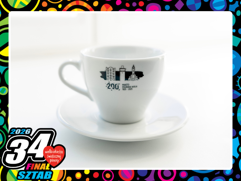 W zestawie znajdują się również filiżanka z grafiką Miasta Zduńska Wola oraz koszulka promocyjna Miasta Zduńska Wola.