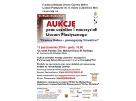 Fundacja Księdza Orione Czyńmy Dobro oraz Liceum Plastyczne im. K. Kobro w Zduńskiej Woli zapraszają na aukcję prac uczniów i nauczycieli plastyka "Czyńmy Dobro-pomagajmy Dawidowi".