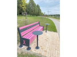 Różowa ławeczka stanęła przy ścieżce nad zbiornikiem wodnym Kępina w Zduńskiej Woli. Budowę i montaż ławki sfinansowano z Budżetu Obywatelskiego 2024, a jej kolor nie jest przypadkowy. Ma kojarzyć się z rakiem piersi i jego profilaktyką.