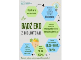 "Bądź eko z biblioteką!" - do udziału w konkursie o takim tytule zachęca Miejska Biblioteka Publiczna w Zduńskiej Woli. To konkurs na hasła promujące książnicę.