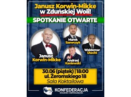Jutro, 30 czerwca, w Zduńskiej Woli pojawi się Janusz Korwin-Mikke. Otwarte spotkanie z politykiem oraz innymi członkami Konfederacji odbędzie się w Sali "Koktajlowej" przy ul. Żeromskiego 18.