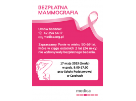 W środę, 17 maja w gminie Zduńska Wola odbędą się bezpłatne badania mammograficzne. Mammobus stanie przy Szkole Podstawowej w Czechach.