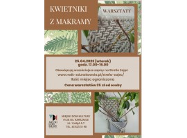 Jeśli chcesz nauczyć się wyplatania kwietników z makramy i spędzić miło czas w sympatycznym towarzystwie, to warto wziąć udział w kolejnych warsztatach, które odbędą się w filii Miejskiego Domu Kultury w Karsznicach.