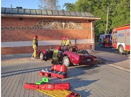 Wypadek przy ul. Orione w Zduńskiej Woli. Wczoraj po południu samochód uderzył w jeden z budynków przy parafii św. Antoniego z Padwy. Poszkodowany mężczyzna trafił do szpitala.