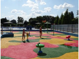 W Zduńskiej Woli od tygodnia czynny jest średni basen przy ul. Kobusiewicza. Dziś (22.08) dla najmłodszych otworzono wodny plac zabaw.
