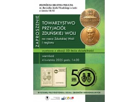 Wystawa prezentująca dorobek wydawniczy Towarzystwa Przyjaciół Zduńskiej Woli zostanie otwarta w piątek, 4 kwietnia, w Wojewódzkiej Bibliotece Publicznej im. Marszałka Józefa Piłsudskiego w Łodzi.