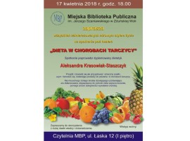 Miejska Biblioteka Publiczna im. Jerzego Szaniawskiego organizuje spotkanie pod hasłem "Dieta w chorobach tarczycy" z dyplomowaną dietetyczką, absolwentką Uniwersytetu Medycznego w Łodzi, Aleksandrą Krasowiak-Staszczyk.
