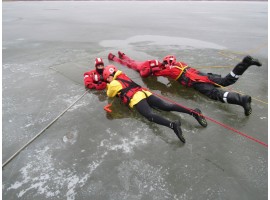 Jak udzielić komuś fachowej pomocy, gdy załamie się pod nim lód - takie jest główne założenie ćwiczeń strażaków oraz ratowników Wodnego Ochotniczego Pogotowia Ratunkowego, które od wczoraj trwają nad zbiornikiem wodnym Kępina w Zduńskiej Woli.