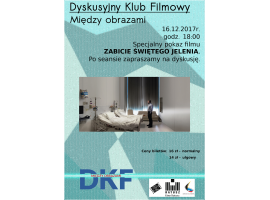Kino Ratusz zaprasza na kolejne spotkanie Dyskusyjnego Klubu Filmowego "Między obrazami". Tym razem obejrzeć będzie można film "Zabicie świętego jelenia". Bedzie to jedyny pokaz filmu w Zduńskiej Woli.