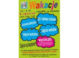 W filii Miejskiego Domu Kultury na osiedlu Karsznice wystartowały wakacyjne zajęcia. Dzieci powyżej 7 roku życia mogą z nich korzystać od poniedziałku do piątku w godzinach 10 – 13.