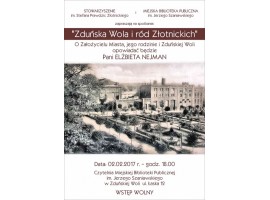 Miejska Biblioteka Publiczna w Zduńskiej Woli i Stowarzyszenie im. Stefana Prawdzic Złotnickiego zapraszają na spotkanie pt. „Zduńska Wola i ród Złotnickich”. O założycielu Miasta, jego rodzinie i Zduńskiej Woli opowiadać będzie Elżbieta Nejman, autorka książki "Cztery pokolenia rodu Złotnickich w Zduńskiej Woli".
