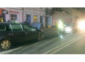 Dwie osoby trafiły do szpital w wyniku wypadku, do którego dziś wieczorem doszło na Placu Wolności. Czołowo zderzyły się tam dwa samochody.
