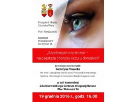 Prezydent Piotr Niedźwiecki zaprasza na wykład edukacyjny pt. "Zapobiegać czy leczyć - najczęstsze choroby oczu u dorosłych". Wykład zaplanowano na dzisiaj.
