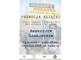Miejska Biblioteka Publiczna im. Jerzego Szaniawskiego, Towarzystwo Przyjaciół Zduńskiej Woli, Muzeum Historii Miasta Zduńska Wola i Księży Młyn Dom Wydawniczy Michał Koliński, zapraszają na promocję książki „Sekrety Sieradza i Zduńskiej Woli” Andrzeja Sznajdera oraz spotkanie z autorem.