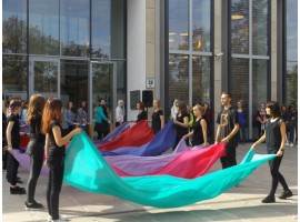 Było kolorowo i tanecznie przy zduńskowolskim ratuszu. Wszystko za sprawą happeningu, który dzisiaj zorganizowali uczniowie Liceum Plastycznego, a wszystko to związane z jubileuszem 40-lecia szkoły.