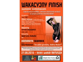 Na zakończenie wakacji Miejski Dom Kultury Zduńskowolskie Centrum Integracji – Ratusz przygotowało "Wakacyjny Finish – summa summarum 2016". Wczoraj od rana na terenach wokół ratusza na placu Wolności trwał piknik rodziny. Po południu i wieczorem przyszedł czas na koncerty. Gwiazdą była Honorata Skarbek.